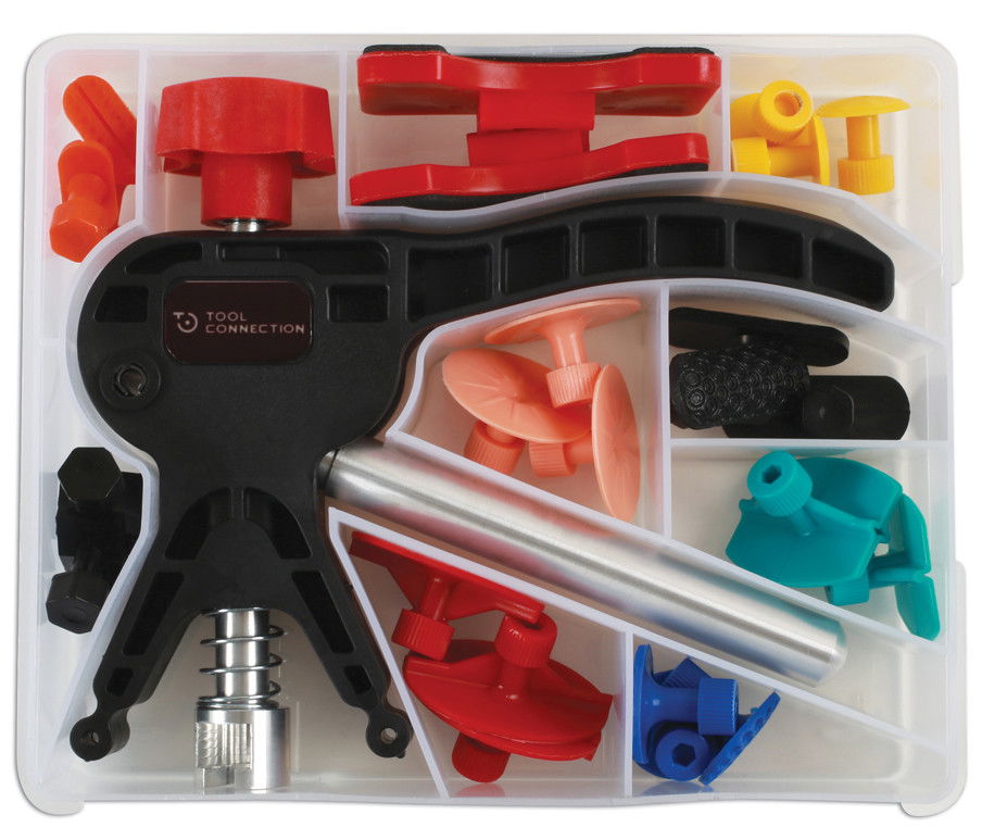 - Újrafényezés nélkül használható horpadás javító készlet 24 darab vegyes húzófüllel.